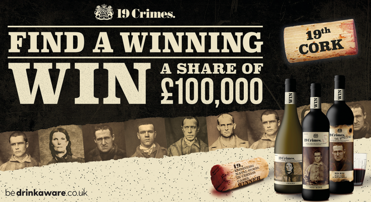 The winning corks are concealed within Promotional 750ml bottles of 19 Crimes Red Wine, Uprising, Chard, Sauv Block and Revolutionary Rose and can be found in supermarkets and impulse channels. Promotional bottles feature an innovative sticker wrap neck-collar with a QR code to direct consumers to the campaign microsite, the19thcork.com, built by the team at The Digital Maze.